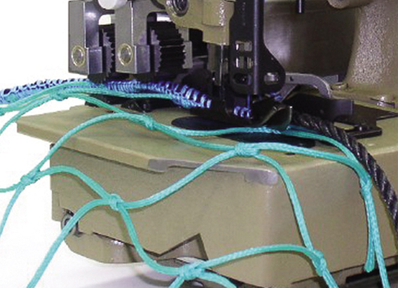 本機(jī)是在於仁81500CZ型縫紉機(jī)的基礎(chǔ)上研制生產(chǎn)的,該機(jī)不僅具備雙拖布輪牽引功能,送料幅與機(jī)器的縫合動作保持同步,確保針距、縫線的一致性以及繩索連接的可靠性,同時根據(jù)對用戶的認(rèn)真了解,對設(shè)備的結(jié)構(gòu)、零件的尺寸進(jìn)行了重大調(diào)整,使之在縫紉直徑4-20mm之間的任何繩索時,無須更換零件,只需對設(shè)備進(jìn)行簡單調(diào)整即可進(jìn)行操作,從而擴(kuò)大了設(shè)備的應(yīng)用范圍。本機(jī)對于繩索和網(wǎng)的導(dǎo)入均提供了專門的零件,便于操作者將繩索和網(wǎng)片連接起來,不會出現(xiàn)跳針現(xiàn)象。